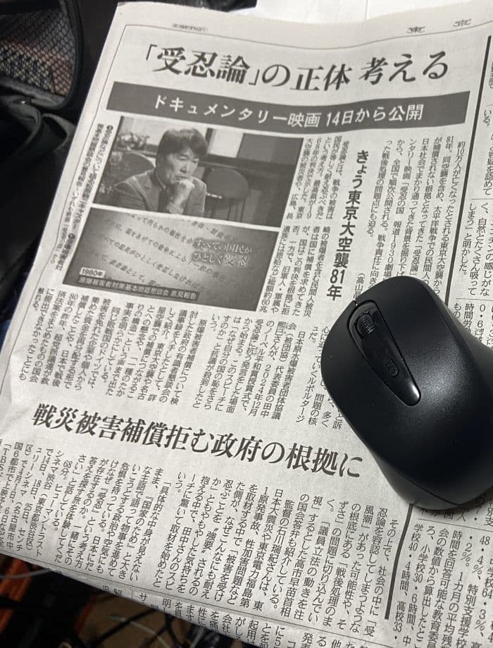しかし現実はどうでしょう?3月10日付けの東京新聞朝刊に、この日が東京大空襲の日であることとにも因み”「受忍論」の正体 考える”との記事がありました。